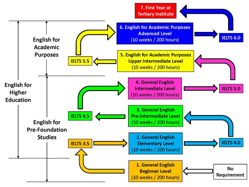 Depending on your English proficiency level, you can enter the program at different entry points.
